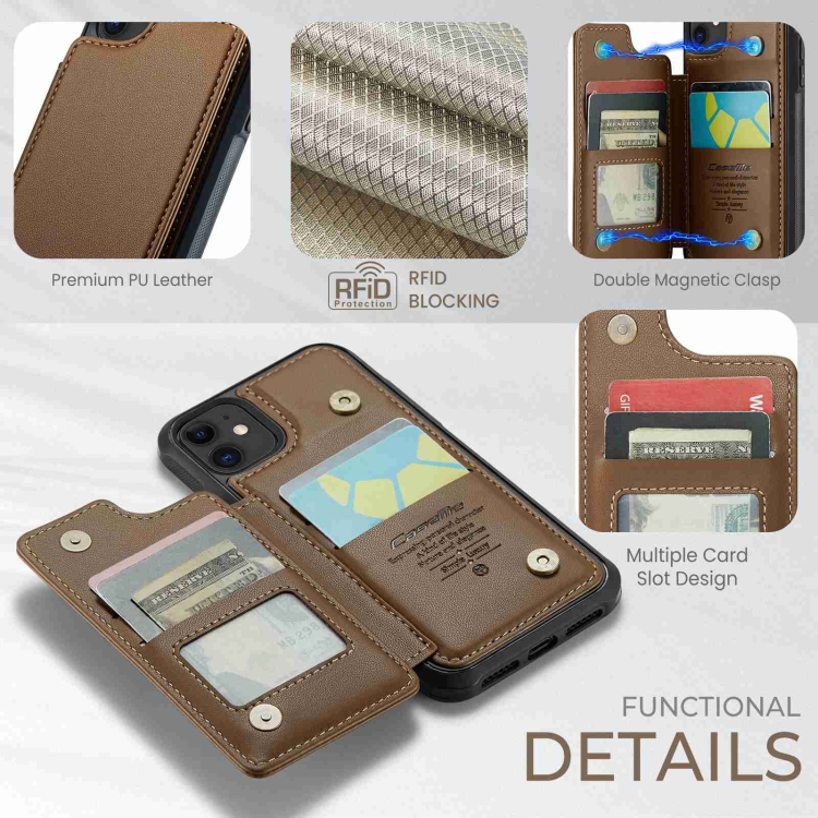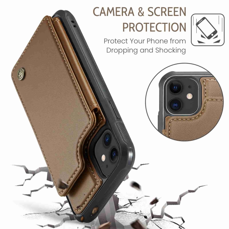 Estuche para teléfono Caseme C22 para iPhone 11 antirrobo con ranuras para tarjetas RFID (Marrón)