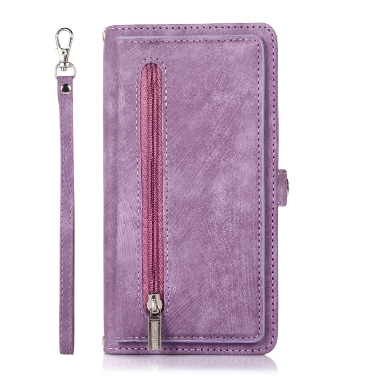 Funda Monedero para iPhone 11 Cremallera Ranura para Tarjeta Hebilla Cuero (Púrpura)