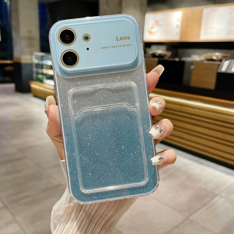 Estuche para Teléfono iPhone 11 con Brillo Degradado Ventana Grande y Ranura para Tarjeta (Azul)