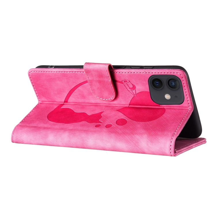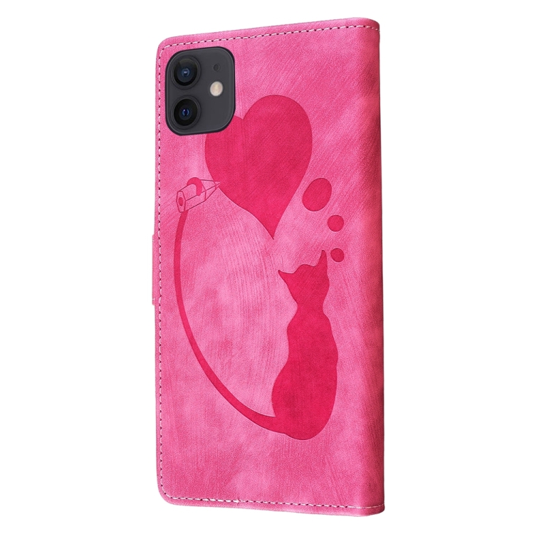 Estuche para Teléfono iPhone 11 Cuero Relieve Gato y Corazón (Rosa)