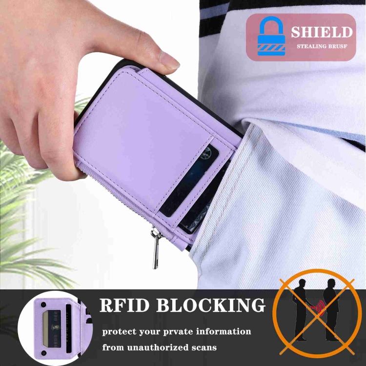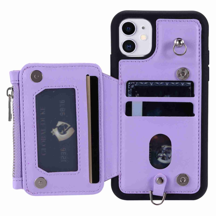 Estuche para Teléfono iPhone 11 Rfid con Ranuras para Tarjetas con Cremallera (Púrpura)