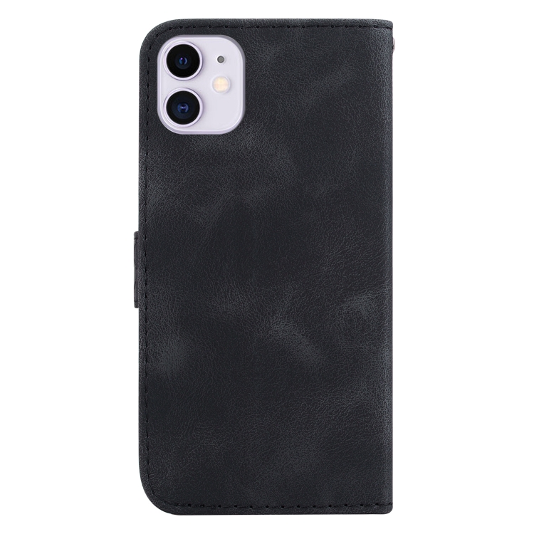 Funda de teléfono iPhone 11 Cuero en relieve en forma de 7 (Negro)