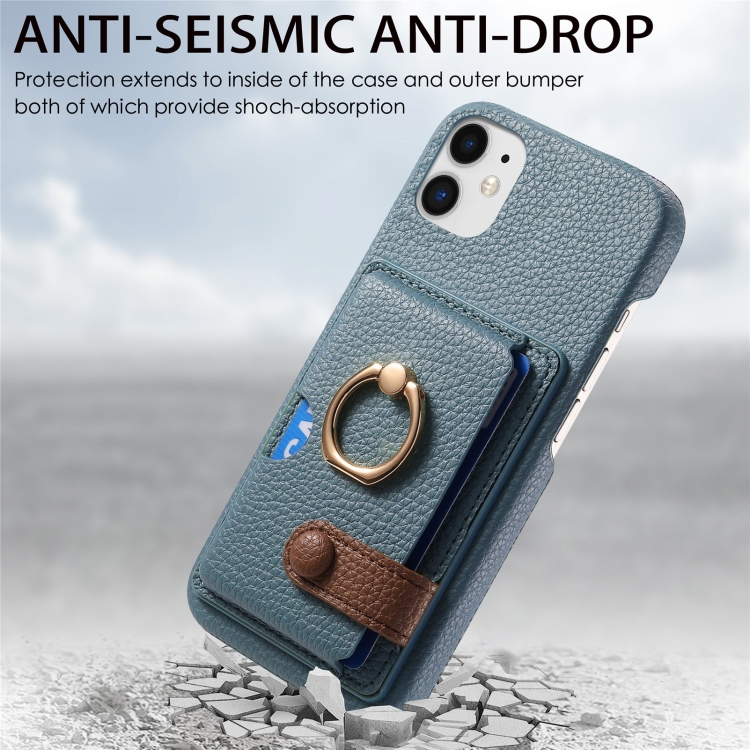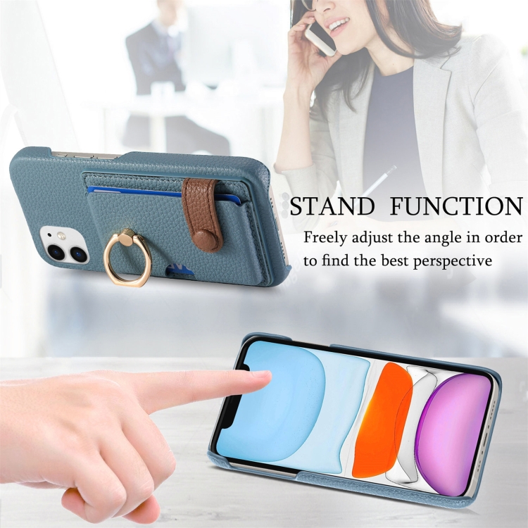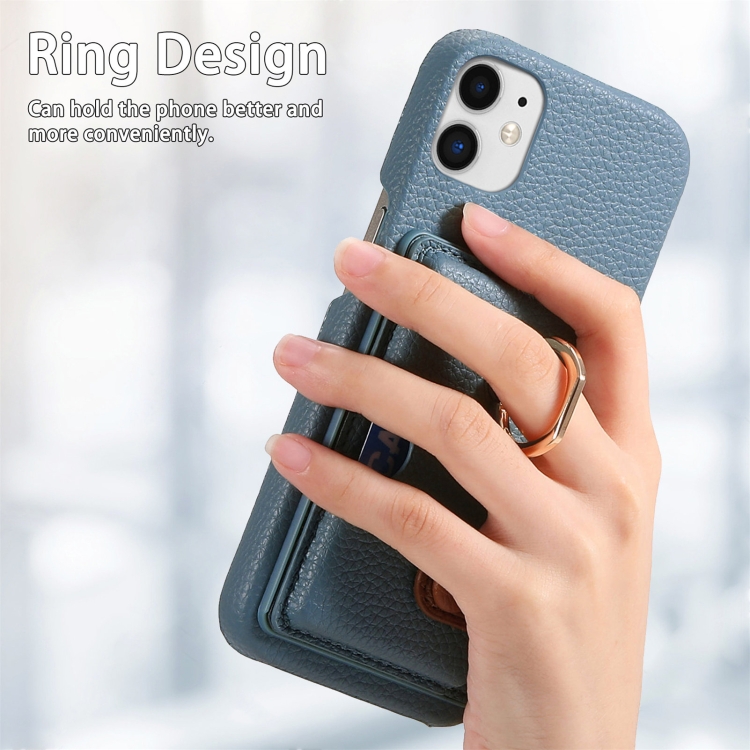 Funda para Teléfono iPhone 11 con Parte Posterior de Tarjeta y Anillo de Borde de Cuero Litchi (Azul Claro)
