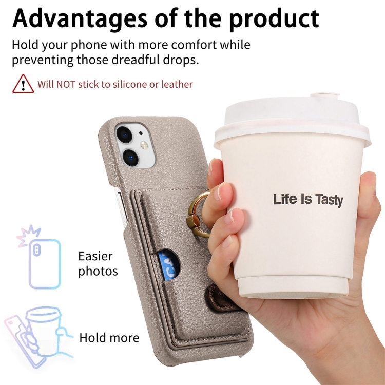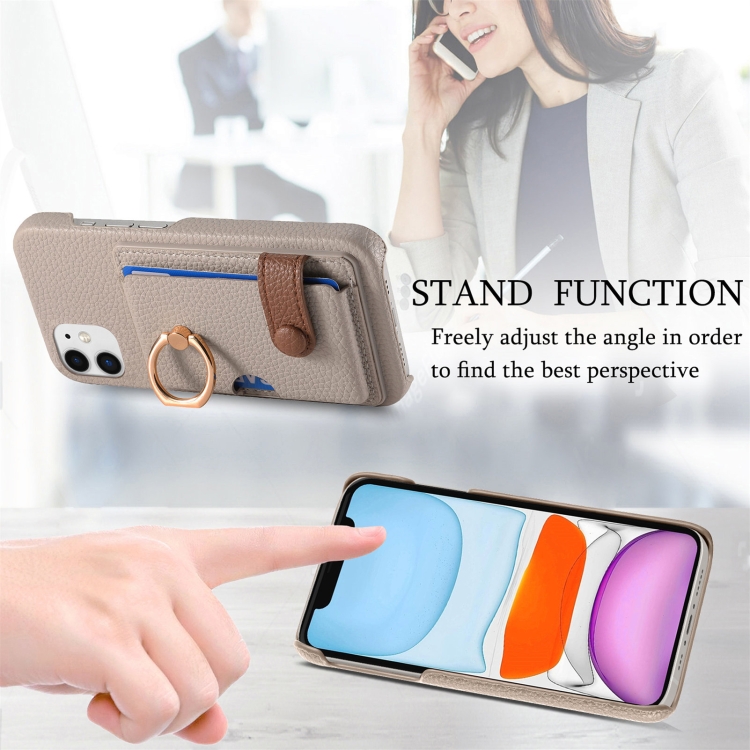 Funda para Teléfono iPhone 11 con Parte Posterior de Tarjeta Anillo Borde Aceite Cuero Litchi (Caqui)