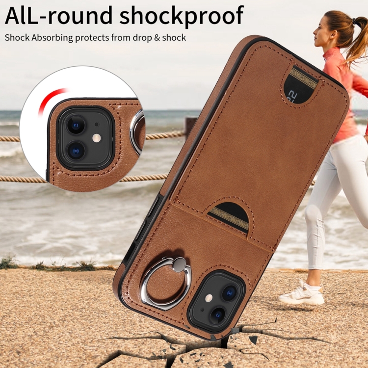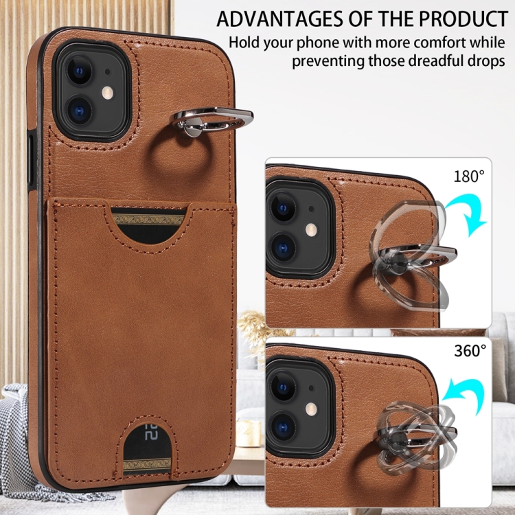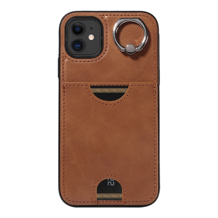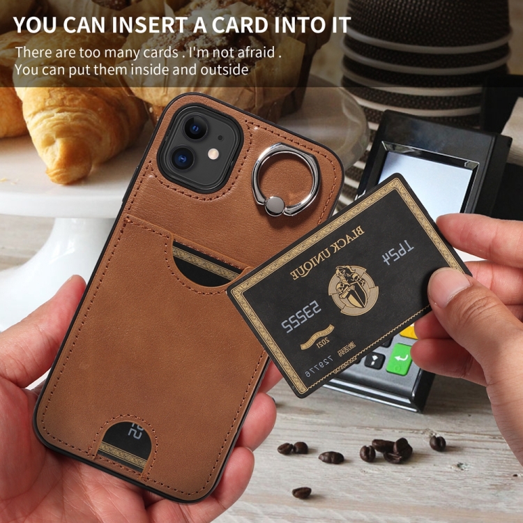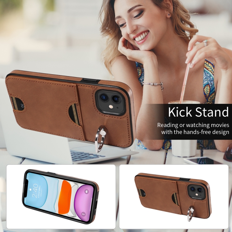 Funda para Teléfono iPhone 11 con Soporte para Anillo y Ranura para Tarjeta (Marrón)