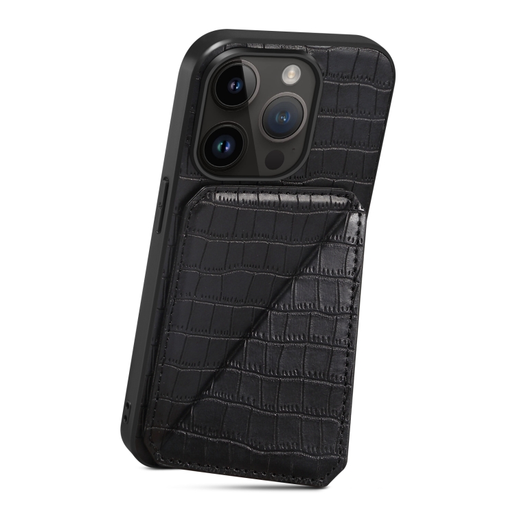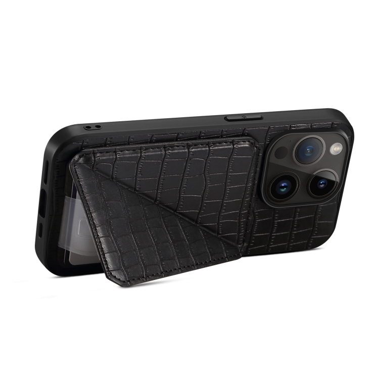 Funda Trasera para iPhone 11 de Piel de Cocodrilo de Imitación con Soporte (Negro)