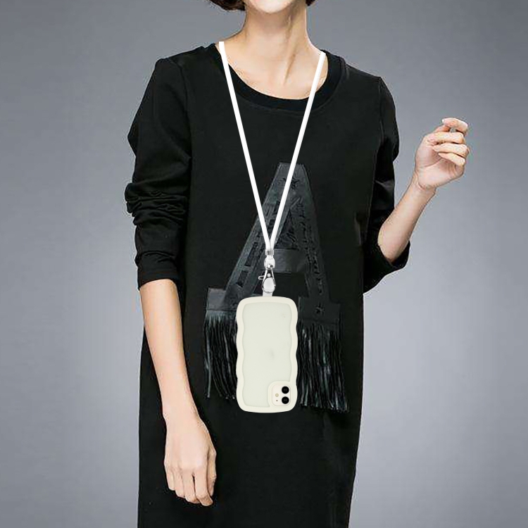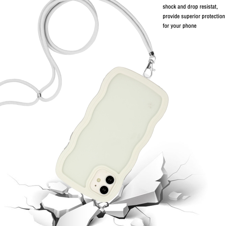 Funda para iPhone 11 Lanyard Candy Color Wave TPU Clear PC Phone Case (Blanco)