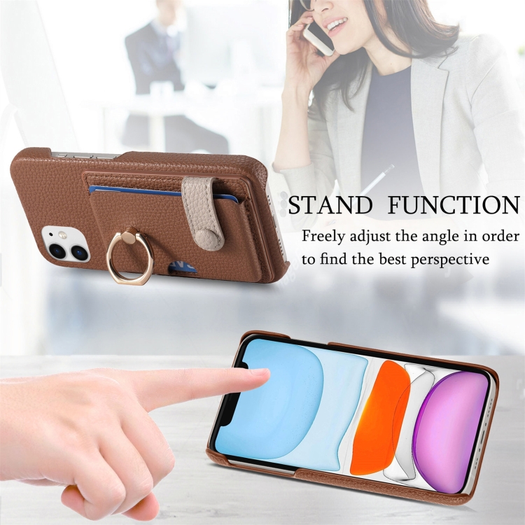 Funda para Teléfono iPhone 11 Litchi Leather Oil Edge Ring Card Back (Marrón)