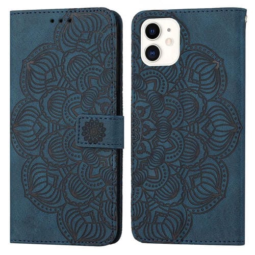 Funda Flip de Cuero Mandala para iPhone 11 con Relieve (Azul)