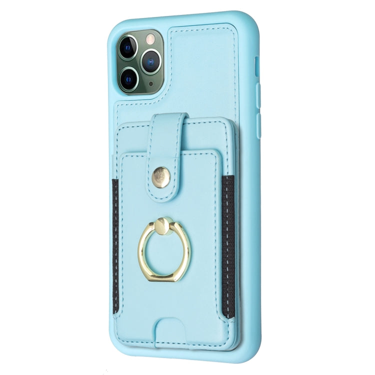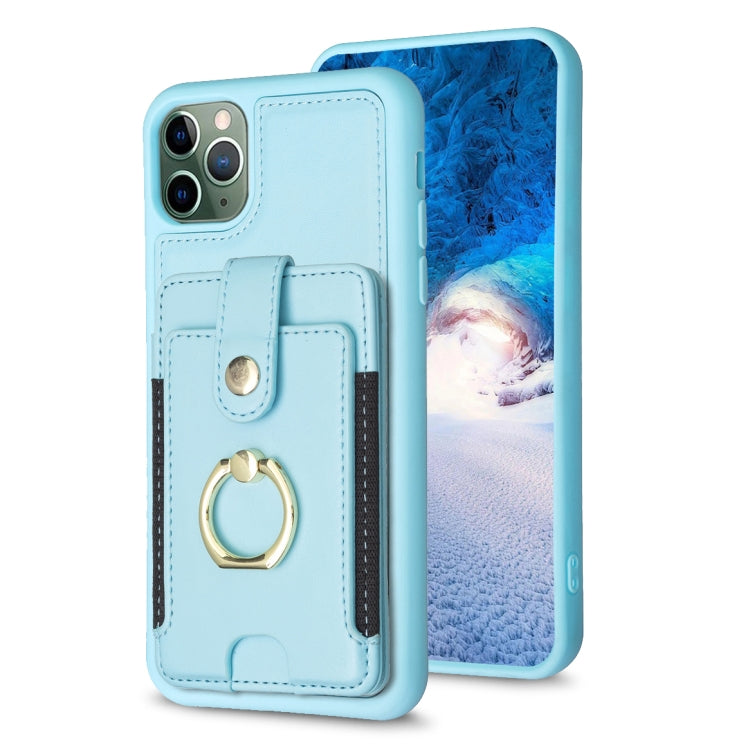 Caja para iPhone 11 Pro Bf27 Anillo de Metal Tarjeta Bolsa Titular (Azul)