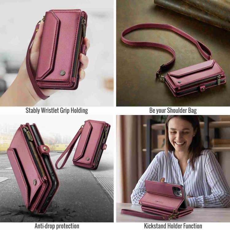Funda para iPhone 11 Pro Caseme C36 Cartera con Ranuras para Tarjetas y Cremallera Antirrobo Rfid (Rojo Vino)
