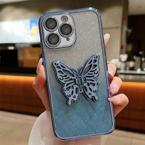 Estuche para Teléfono TPU iPhone 11 Pro Mariposa 3D Brillo Degradado Galvanizado (Azul Degradado)