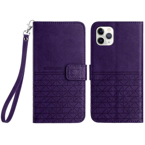 Funda para iPhone 11 Pro Cuero Textura Rómbica con Cordón (Púrpura)