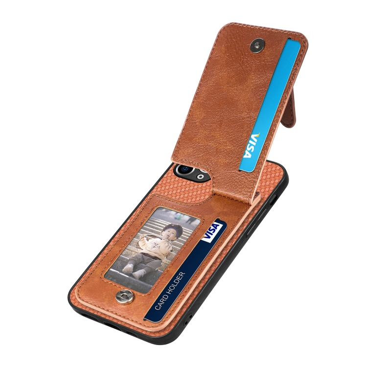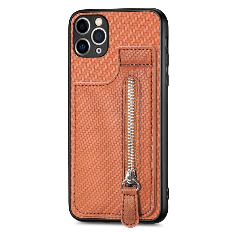 Funda de teléfono iPhone 11 Pro fibra de carbono con cremallera vertical (Marrón)