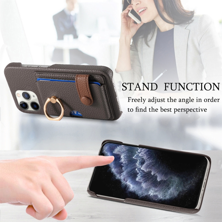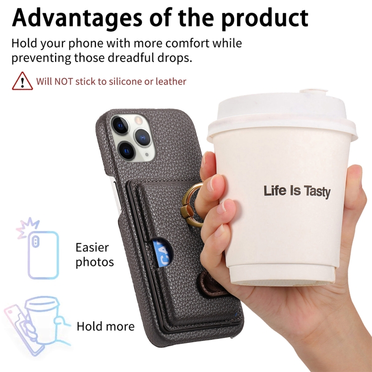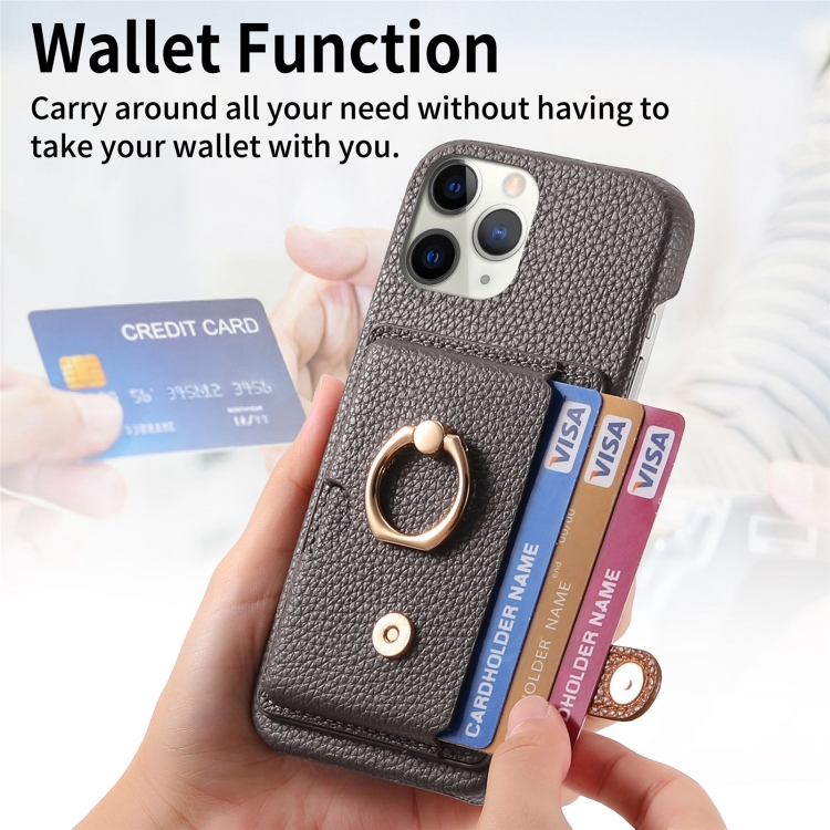 Funda para Teléfono iPhone 11 Pro Litchi Leather Oil Edge Ring Card Back (Gris)