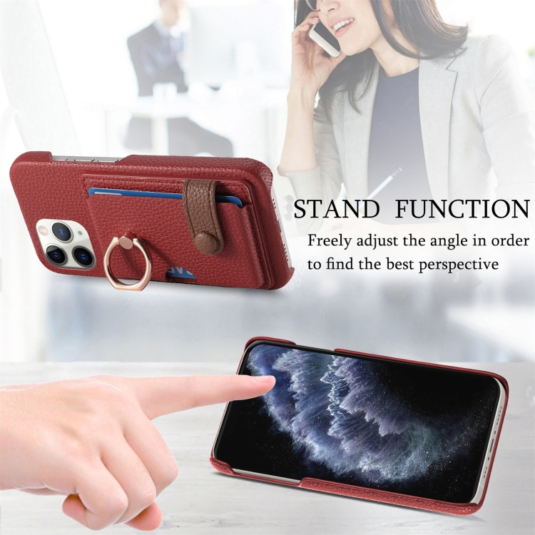 Funda para Teléfono iPhone 11 Pro Litchi Leather Oil Edge Ring Card Back (Rojo)