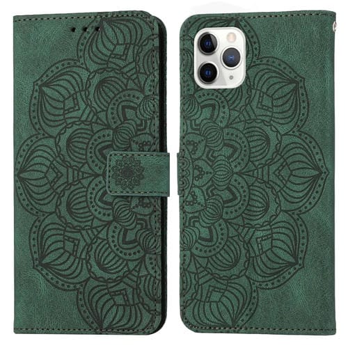 Funda de Cuero Mandala para iPhone 11 Pro con Tapa en Relieve (Verde)