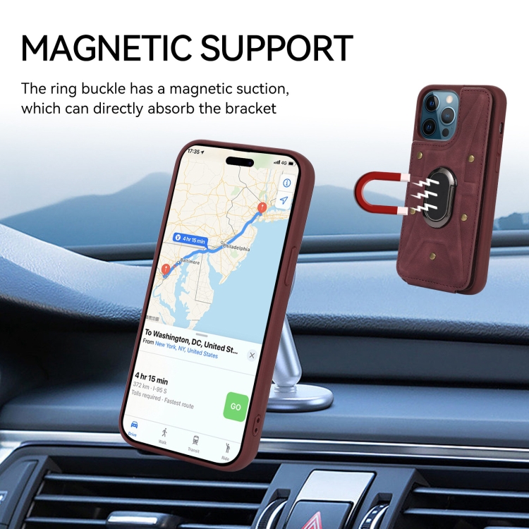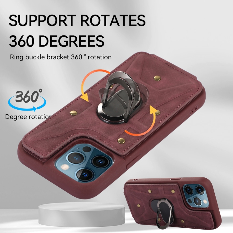 Funda Trasera Armor Ring Wallet para iPhone 11 Pro Max (Rojo Vino)