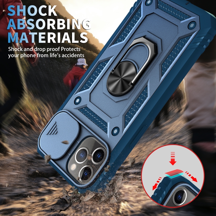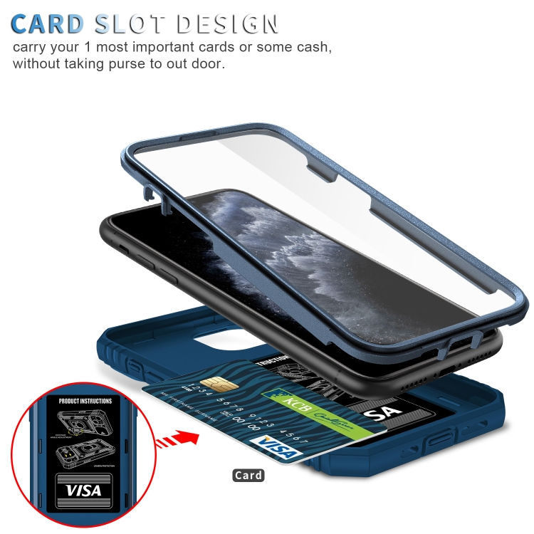 Funda Protectora para iPhone 11 Pro Max TPU + PC con Cubierta de Cámara Deslizante Soporte Giratorio 360 Ranura para Tarjeta (Azul)