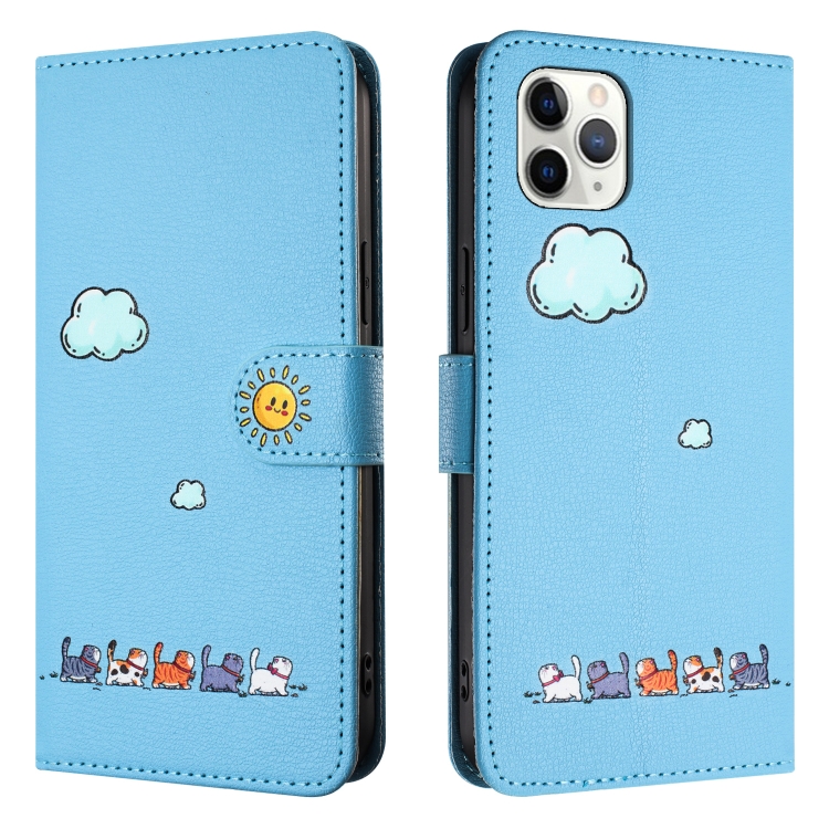Funda para Teléfono iPhone 11 Pro Max Cuero con Gatos de Dibujos Animados (Azul)