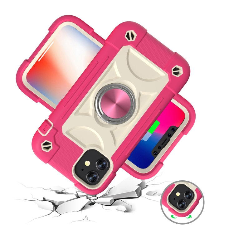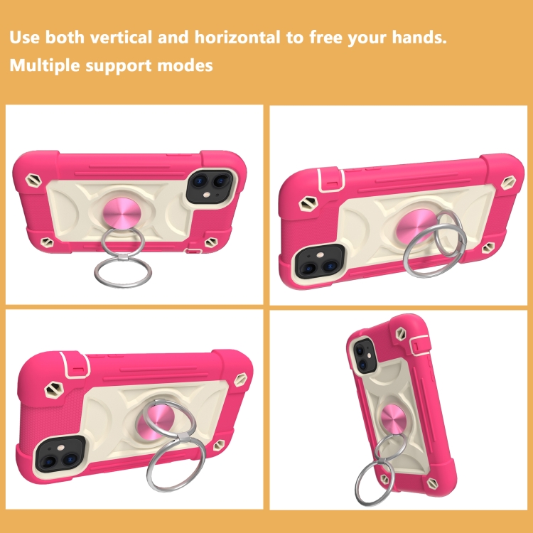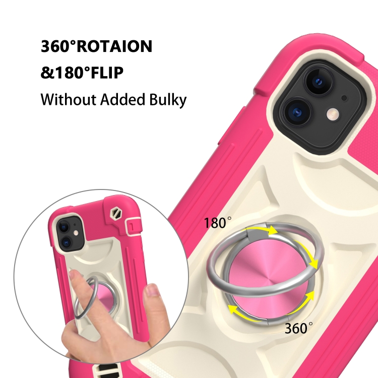 Funda Protectora para iPhone 11 Pro Max Silicona a Prueba de Golpes + PC con Soporte de Doble Anillo (Rose Red)