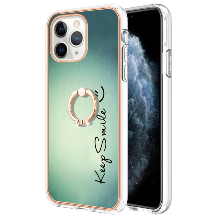 Funda para iPhone 11 Pro Max Galvanoplastia Imd Doble Cara con Soporte para Anillo (Sonrisa)