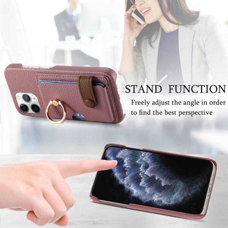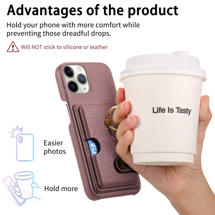 Funda para teléfono iPhone 11 Pro Max Litchi Leather Oil Edge Ring Card Back (Jujube Apricot)