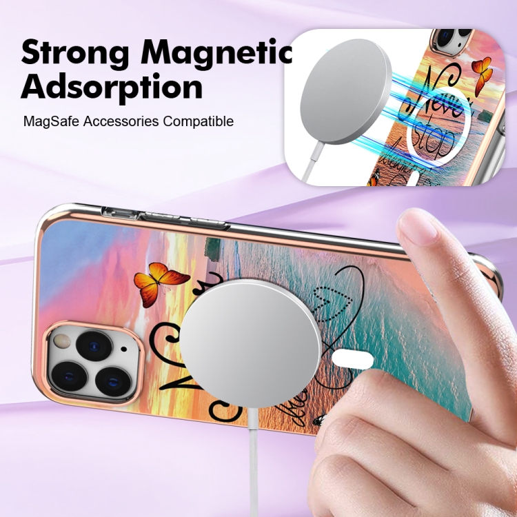 Funda para iPhone 11 Pro Max Marble Pattern Dual-Side Imd Magsafe TPU (Dream Butterfly)