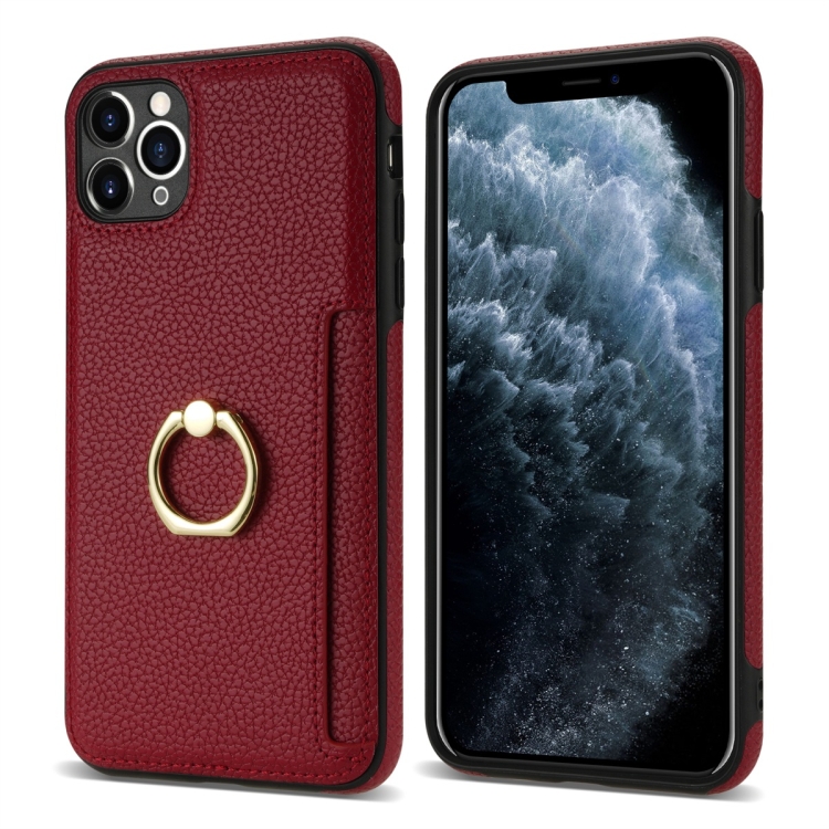 Funda Trasera iPhone 11 Pro Max Ring Card Litchi Cuero (Rojo)