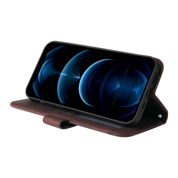 Funda de Cuero Skin Feel Life Tree para iPhone 11 Pro Max con Botón de Metal, Tapa Horizontal, Soporte, Ranura para Tarjeta, Billetera, Marco de Fotos y Correa (Marrón)