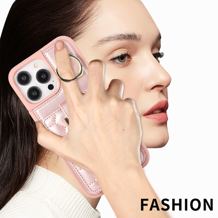 Funda para iPhone 11 Pro Max Vertical Card Bag Ring Holder con Doble Cordón (Oro Rosa)