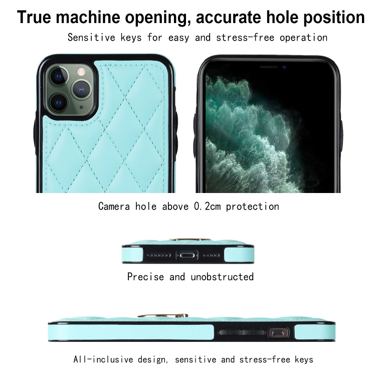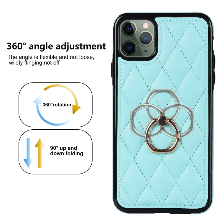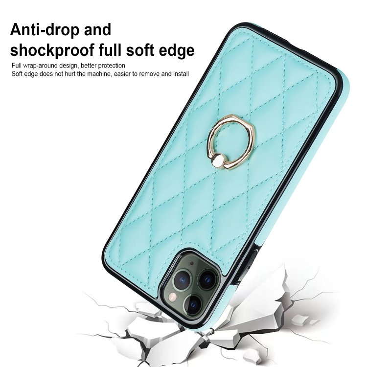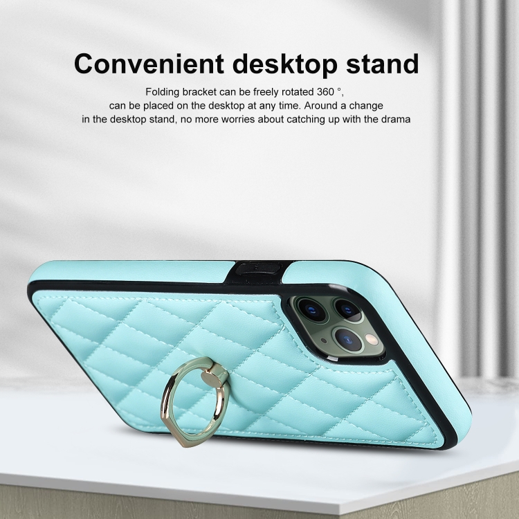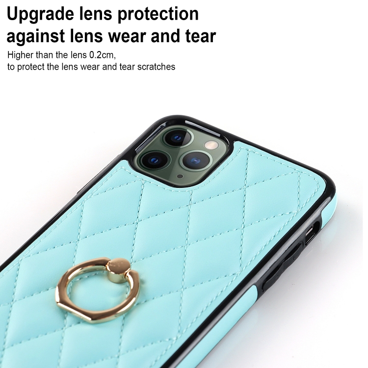 Funda para iPhone 11 Pro Rhombic PU Cuero con Soporte para Anillo (Azul)