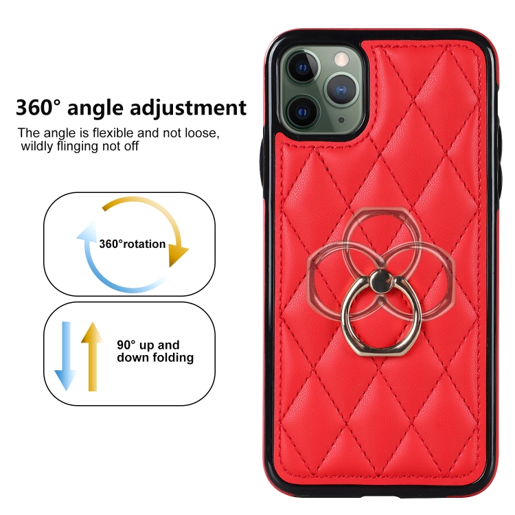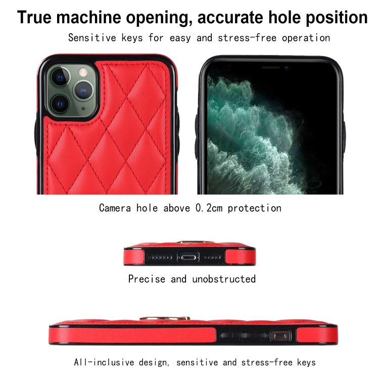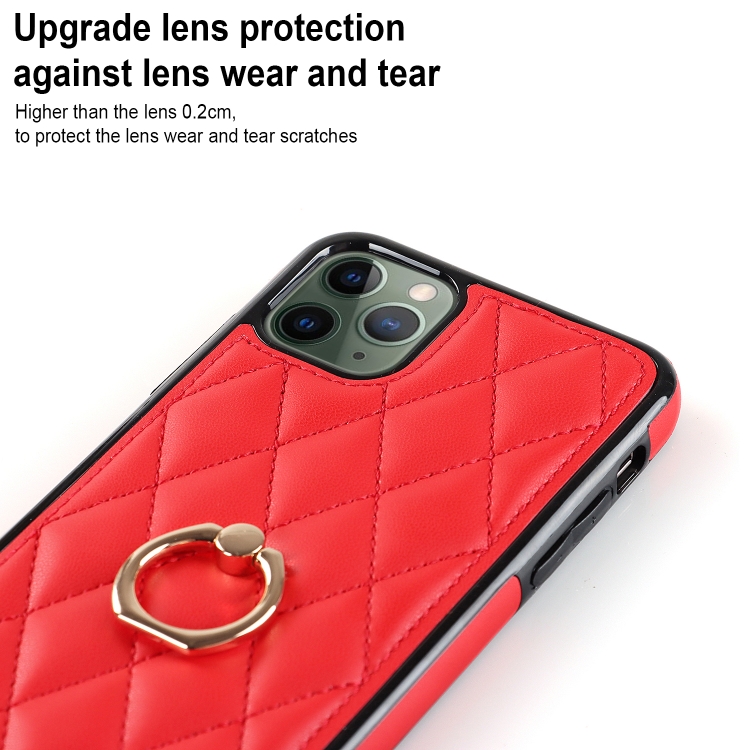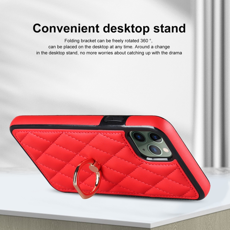 Funda para iPhone 11 Pro Rhombic PU Cuero con Soporte para Anillo (Rojo)