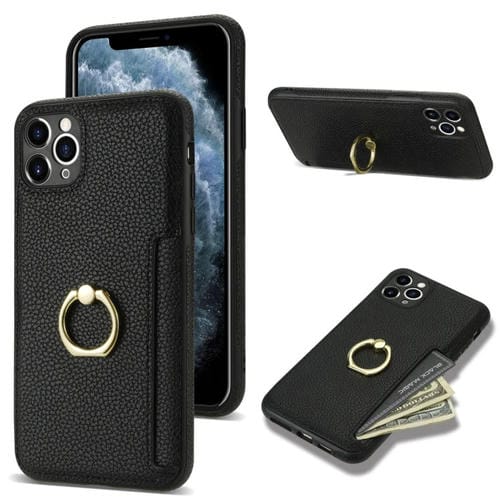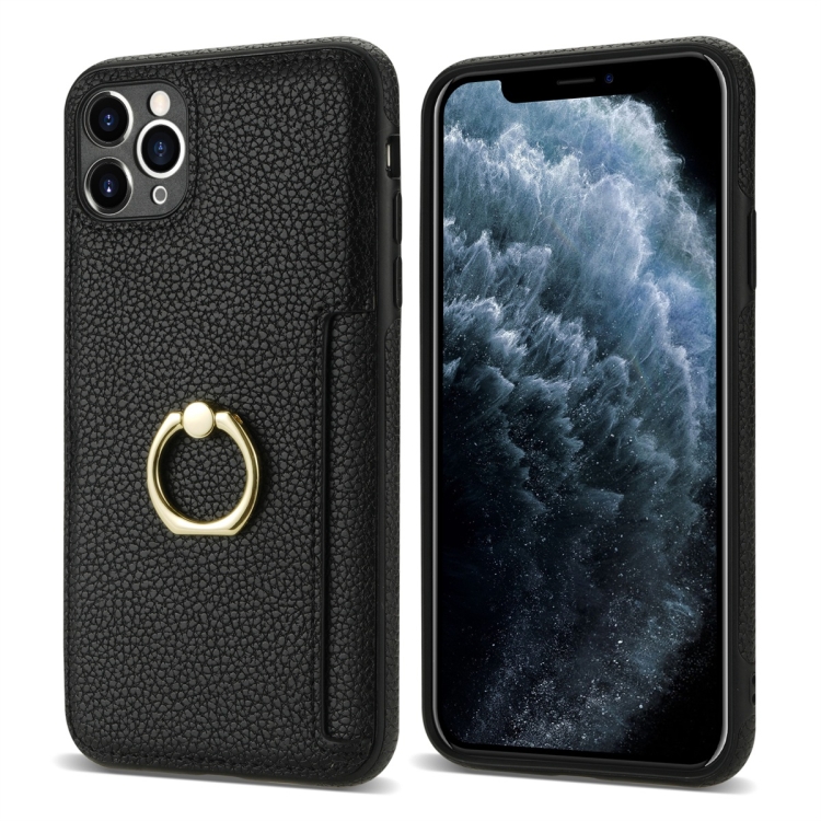 Funda Trasera para teléfono iPhone 11 Pro Ring Card Litchi Cuero (Negro)