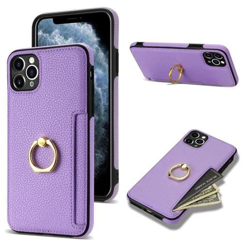 Funda Trasera para iPhone 11 Pro Ring Card Litchi Cuero (Púrpura)