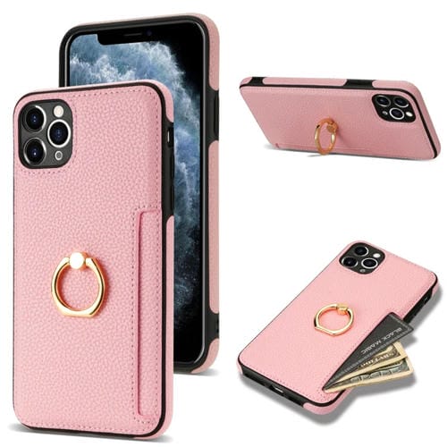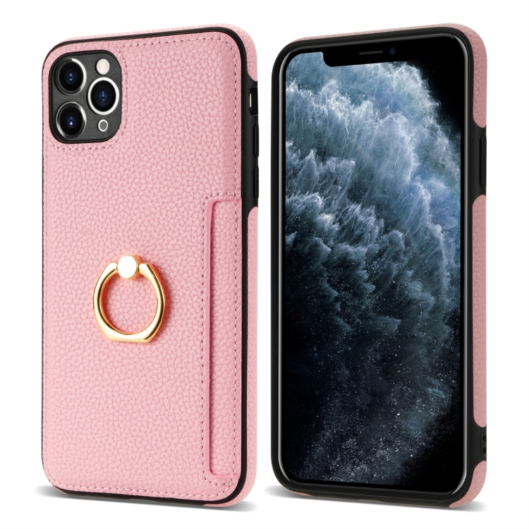 Funda Trasera para iPhone 11 Pro Ring Card Litchi de Cuero (Rosa)