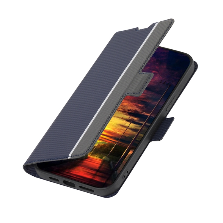 Funda para iPhone 11 Pro Twill Texture con Botones Laterales de Cuero (Azul)