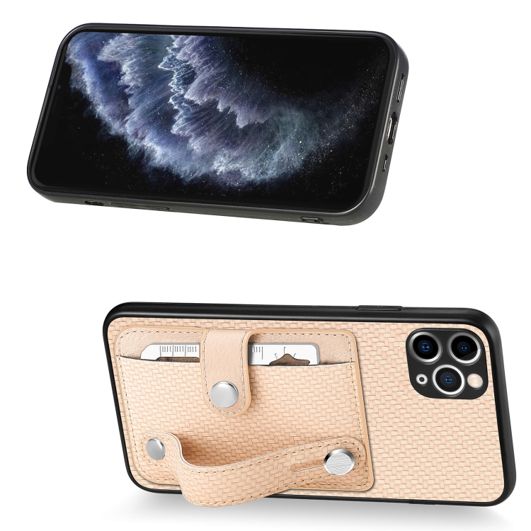 Funda para iPhone 11 Pro Wristband Kickstand Card Wallet Back Cover con Tool Knife (Khaki)