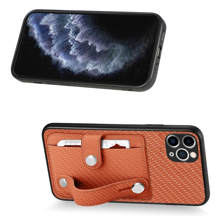 Funda para iPhone 11 Pro Wristband Kickstand Card Wallet Back Cover con Tool Knife (Marrón)