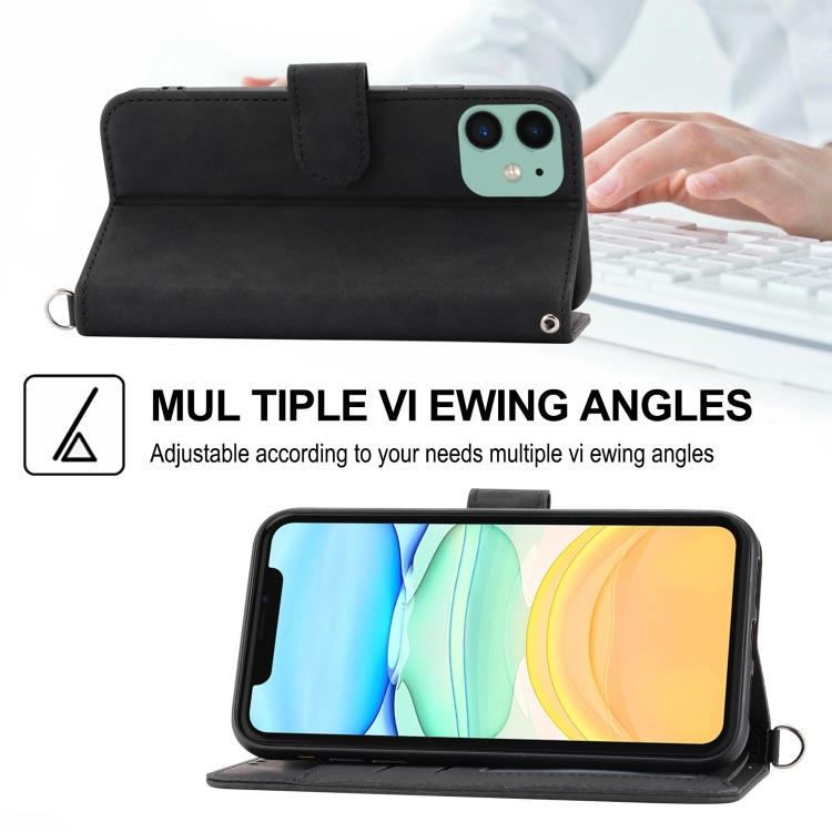 Funda de Cuero Skin-Feel Flowers para iPhone 11 con Billetera en Relieve (Negro)