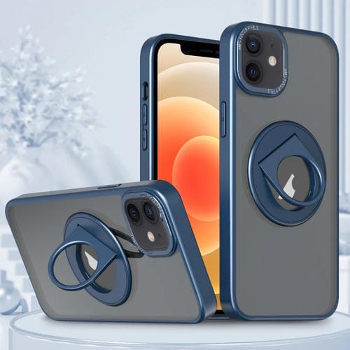 Estuche para Teléfono iPhone 12 / 12 Pro Soporte Magnético Anillo Giratorio (Azul)