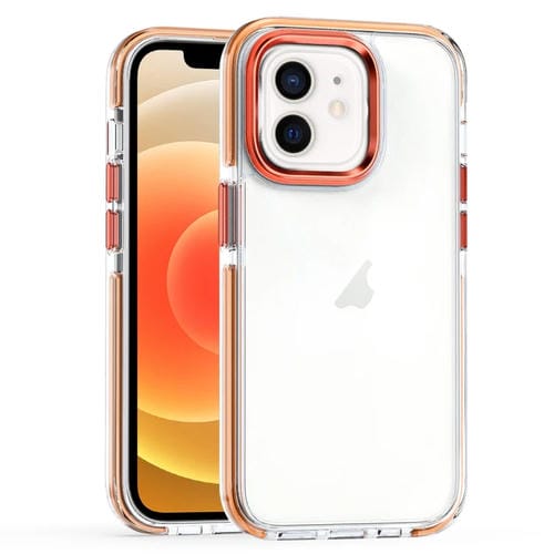Funda para Teléfono iPhone 12/12 Pro PC Transparente TPU Dos Colores (Naranja)