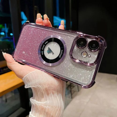 Estuche para Teléfono iPhone 12 6D Magsafe Armadura Brillo Degradado Galvanoplastia (Púrpura)