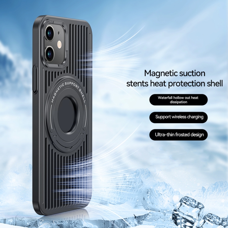 Funda para Teléfono iPhone 12 Cooling Magsafe con Soporte de Anillo Magnético (Negro)