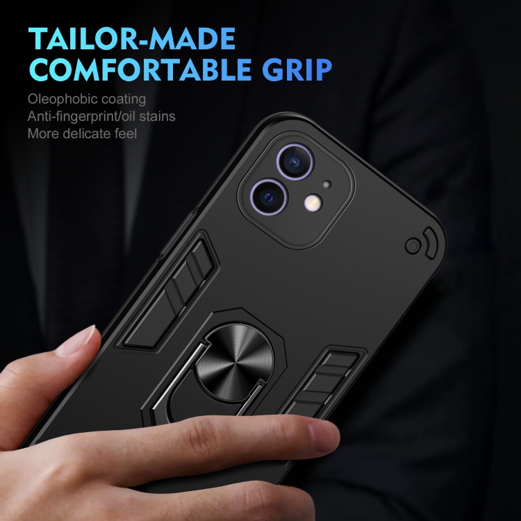 Funda para Teléfono iPhone 12 con Soporte de Anillo de Metal a Prueba de Golpes (Negro)