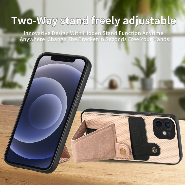 Funda Cartera para iPhone 12 Mini Fibra de Carbono Flip Card con Soporte en Forma de K (Caqui)