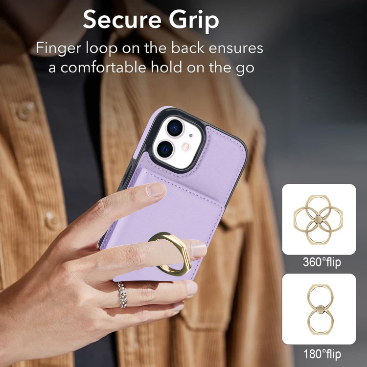 Estuche para Teléfono iPhone 12 Mini con Soporte para Anillo y Tarjeta Antirrobo Rfid (Púrpura)