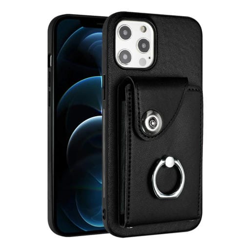 Funda para teléfono iPhone 12 Mini con soporte para anillo y bolsa para tarjeta (Negro)