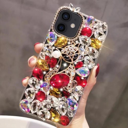 Funda para Teléfono iPhone 12 Mini Fox con Diamantes de Imitación y Piedras Preciosas para PC (Rojo)