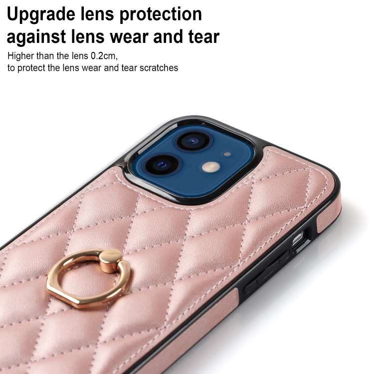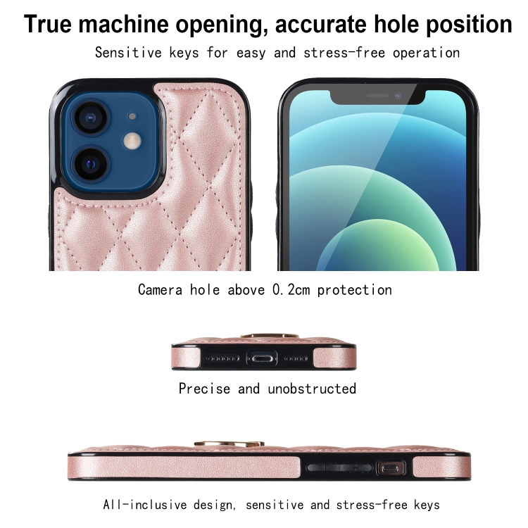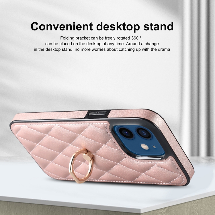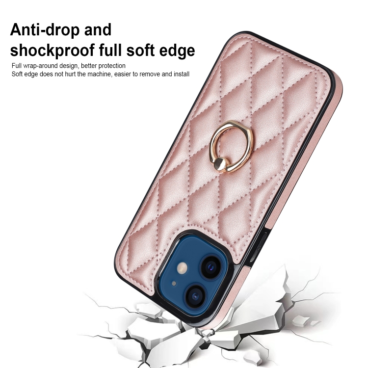 Funda para iPhone 12 Mini Rhombic PU Cuero con Soporte para Anillo (Oro Rosa)